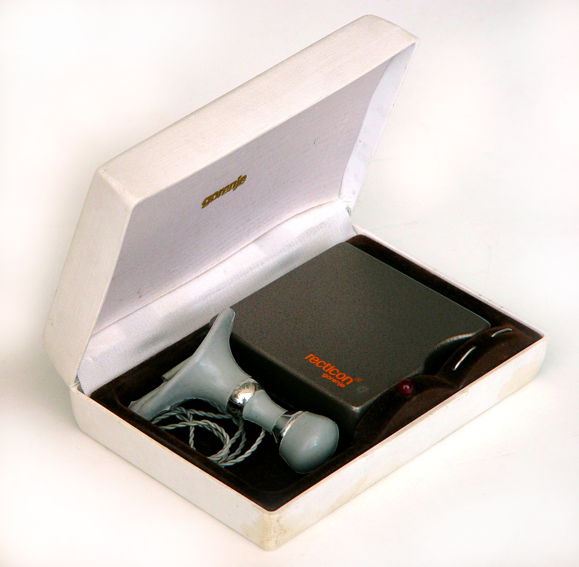 Stimulator RECTICON je namenjen moškim s kronično urinsko inkontinenco. Elektronsko vezje je skupaj z baterijo nameščeno v zunanjem ohišju, elektrode pa so del analnega vložka in so s kablom povezane z elektronskim vezjem. Vezje in model tega stimulatorja sta bila pod številko 35 504, P2342/74 patentirana leta 1974.